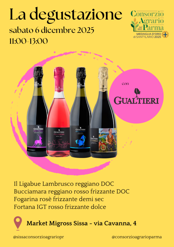 Sabato 6 dicembre al market Migross di Sissa del Consorzio Agrario Parma sono stati nuovamente con noi gli amici della Cantina Gualtieri per una degustazione che ha confermato l’apprezzamento per le loro etichette selezionate con protagonisti Il Ligabue Lambrusco reggiano DOC, Bucciamara reggiano rosso frizzante DOC, Fogarina rosè frizzante demi sec e la Fortana IGT rosso frizzante dolce. Grazie a Marco Prati che ci ha fatto compagnia nell’arco della mattinata attraverso il racconto di queste eccellenze del nostro territorio.
